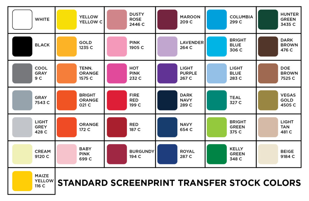 More color options are available for an additional charge – Neon, Glitter, Vintage feel and stretch transfers.